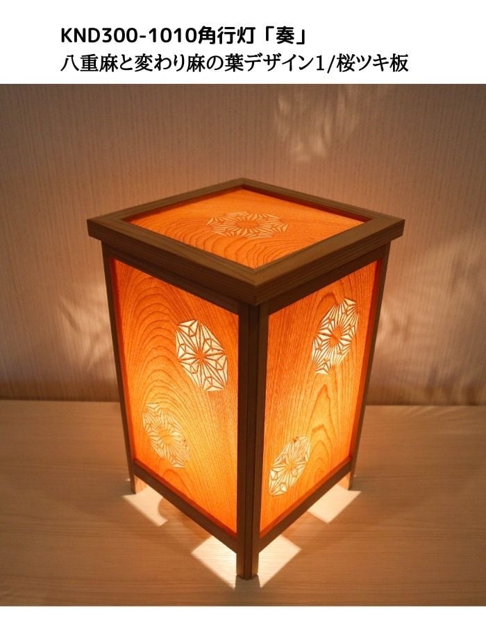 KND300-1010 レーザー角行灯「奏」 八重麻と変わり麻の葉/桜ツキ板 ★ホテル・和風旅館・飲食店・リラクゼーション施設などにお薦め!伝統技術と精密技術、耐久性を組み合わせた作品です。